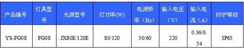 ※注:表中所列为常规色温产品,如需其它色温(2700K-6500K)产品可按顾客要求生产。