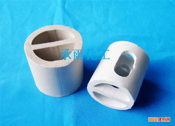 拉西环中增设了一字隔板。一般来讲,陶瓷一字环填料由于尺寸较大,仅适用于整齐堆砌,目前一般只作为乱堆填料的塔底支撑分布层用。Φ80-200mm规格的陶瓷一字环填料可作支承材料,空隙率大于60%,个数为整聚数。