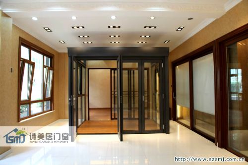 是一种采用靠上下轨道水平移动,多扇折叠、推移到侧边,这种门开启时无噪音、占空间较少、美观、大方。 适用范围:阳台与客厅、客厅与餐厅、餐厅与厨房、