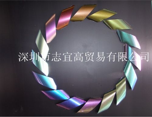涂在反射角可以看到红色,而在散射角则可以看到绿色。白色珠光颜料在反射角为白,而在散射角就会透出基材的颜色,或者是