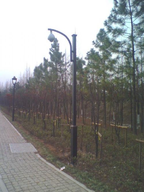 3、摄像杆上成180o角两腰形孔的中心连线应与道路走向平行;