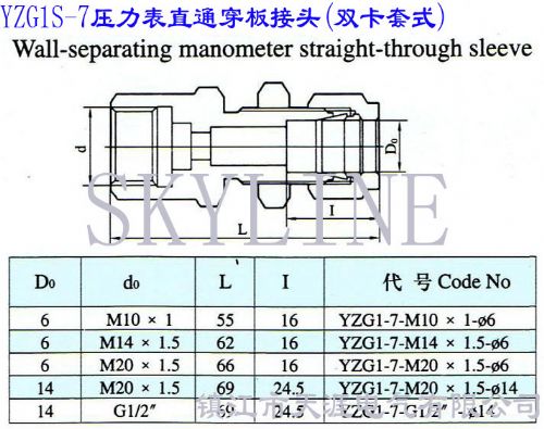 YZG1S-7 Wall-separating manomete straight-through sleeve