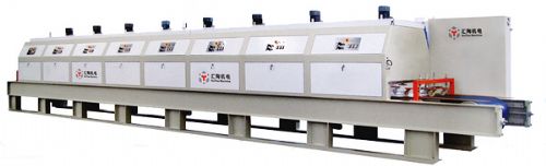 进行半抛或全抛光,每组磨头采用独立摆动装置,摆动频率高、磨削效果好,能有效提高加工速度,减少加工成本。本机整线包括:粗抛、精抛及增光三部分。