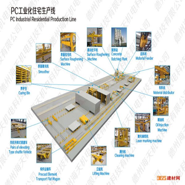 剪力墙板和叠合楼板),可生产较复杂或预埋较多的墙板。 流水线系统组成:模台系统,模台输送系统,混凝土输送系统,布料系统,混凝土振实系统,养护窑系统,预养护系统,脱模系统,运输系统,构件表面处理系统,其它设备系统和控制系统等。