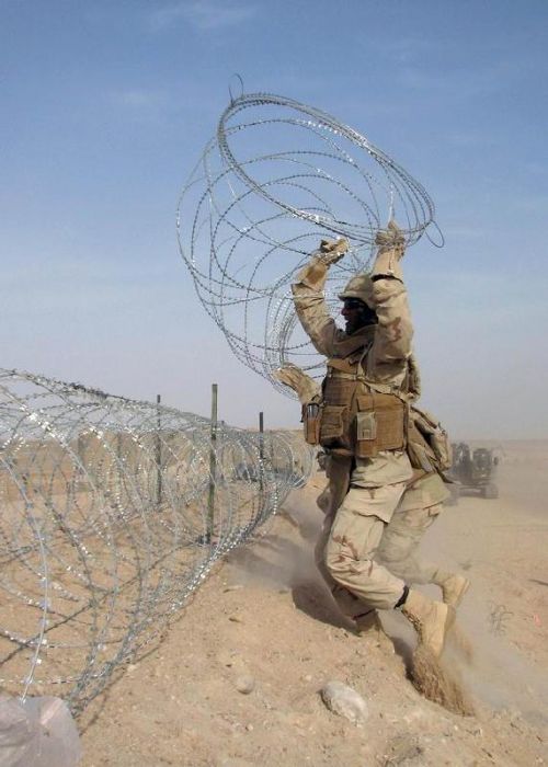 薄板做刀片,钢丝做芯线组合而成的防护器材