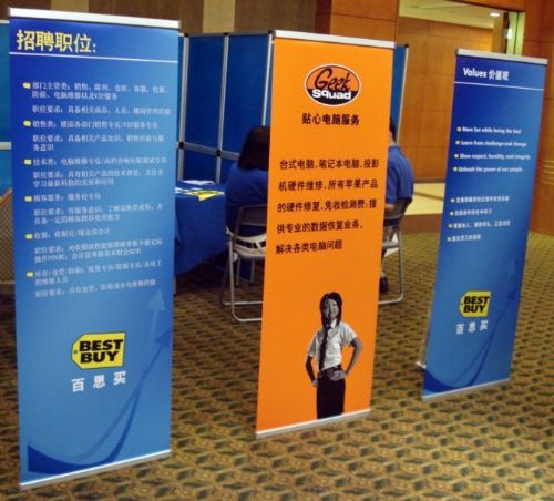 底座铝合金配重型,单个装一个牛津包,有60*160cm,80*180cm,120*200cm,其它尺寸可以定做。6套装一箱,画面可以用PP纸,写真布,油画布,写真裱PVC等。