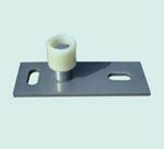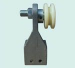钢材料,强度高、不易变形;挂轮采用复合塑料,与上导轨配合使用,耐磨、寿命长。该部件已获国家实用新型专利。 下导轮:该结构由固定架、轴、导轮、紧固件等组成。固定架采用金属材料;导轮采用复合塑料,与下导轨配合使用,耐磨、寿命长。用以保证门扇在运行时的平稳性。 偏心轴:为金属材料,属上挂轮的一个部件,作用为调节门扇两端的高低,以达到两门扇纵向平行。