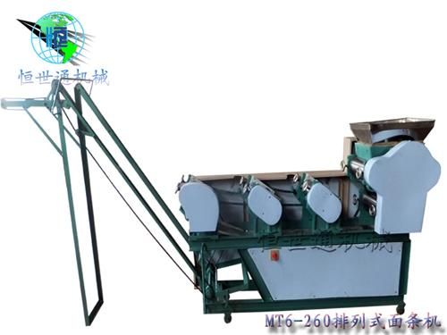 1、和面:和面是面条生产的首道工序,把面粉放入拌面机里开始拌面,按规定25%左右的比例进行加水,启动动力,把面和水拌均匀达颗粒状(以10分钟后使用*佳),可使用。