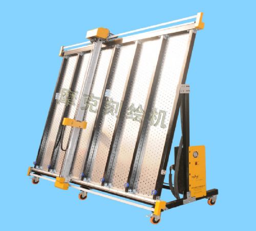 保护膜的平板玻璃上直接刻绘图案,且不会划伤玻璃,有效的解决了普通刻绘机“转移法”刻膜贴膜的诸多弊病,刻绘质量和工作效率成倍提高。摩克立式平台刻绘机