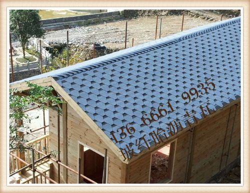 瓦片,可自由裁剪,能成功覆盖于不同形状和不同基层的屋顶,可广泛应用于锥形,弧形,球形等结构复杂的坡屋面。