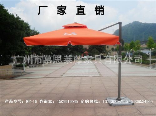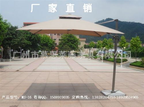罗马伞也叫360°旋转伞,因其神奇的旋转功能和无与伦比的遮阳效果获得大众的广泛认可。其伞面的角度可在90°的范围内任意调节,脚踩踏板旋转,可升降倾斜,抗风性很强。