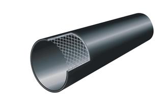 钢丝网骨架聚乙烯复合管是以高强度钢丝左右螺旋缠绕成型的网状骨架为增强体,以