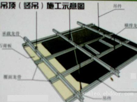 弹性吊件、隔尼隔声板、吊顶系列轻钢龙骨或烤漆龙骨、嵌缝石膏、嵌缝纸带。