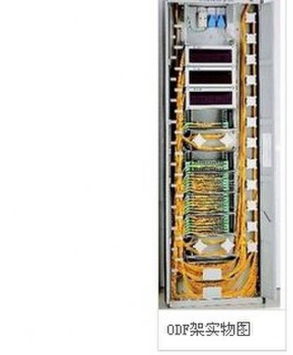 结构: 典型ODF架的结构图:ODF架应具有可靠终端光缆和灵活分配光纤的功能,并为保护接地端子的引出提供方便。光纤分配架由机架、子架、盘、熔接盒、保护熔接点的附件、光纤适配器以及尾纤组成。
