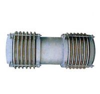 前部(通道端)有两个总做波纹管,后部(平衡端)有一个平衡波经纬度器,当弯曲管产生横向位移时,大拉杆上的球面螺面绕球面垫圈转动,同时大拉杆承受内推压力。金属