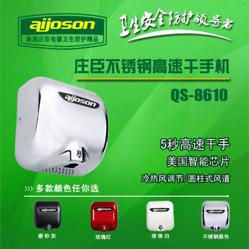 配置超高速电机,高速气流柱出风口设计,风速强劲,5秒即可干手。具有数码集成