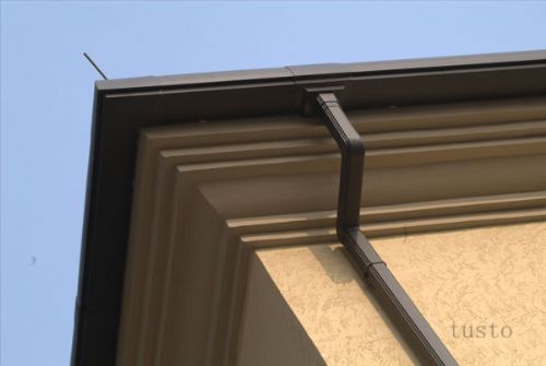 根据落水管位置计算落水管长度裁切,插接部分重叠3cm;裁切过的落水管,如果需要插入到下方的落水管中时,须把端头变小;
