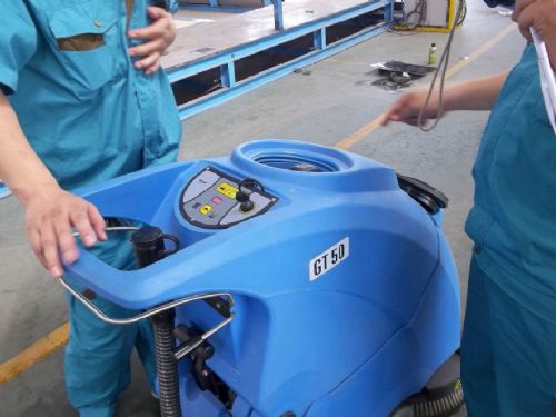 传动系统操作简便、山东洗地机机动灵活的手推式全自动洗地【车间用洗地机】机,有盘刷式、盘刷带驱动式、滚刷式、滚刷带驱动式四种版本的机型。客户可根据实际需要进行选择