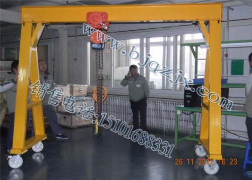 主要有二种规格:一是在地面上全方位移动的龙门架,带刹车承重轮可在地面上移动,适合在地面上起吊物品;二是用