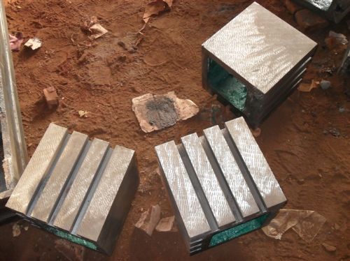 测量精度高,它的尺寸精度在0.01mm之内,相对平面互相平行,相邻平面互相垂直,允许误差均在0.01mm之内。检验方箱也可用于把工件平行垫高,当高度游标尺不够高时,也可在高度游标尺下垫上几块方箱,这样可划出比高度游标尺的刻度高几百毫米的线来。对于边长为300mm及以下的方箱,检定时在方箱被检面的两端各放置1mm的量块,把刀口尺放在量块工作面上,然后在其各被检点处用量块试塞,当量块组刚刚塞入时的尺寸与两端量块尺寸之差为该被检点对两端之间的偏差。这一检定还应在方箱工作面的纵向、横向和对角线方向的几个截面上进行。在测得的各个位置的直线中误差方向一致时取其*大值,当误差方向不一致时取其*大正差与*大负差绝对值之和,是检验方箱测得平面的平面度