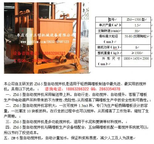 上料。自动行走、自动搅拌、自动提升,克服了墙板生产中