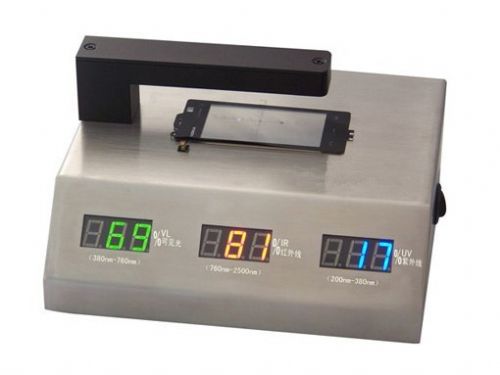 2:将被测试物放入测试位置。三个显示器分别显示被测物对红外850nm,红外线940nm和可见光550nm波长的透过率。
