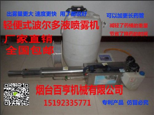 百亨牌波尔多液、石硫合剂烟雾、水雾、弥雾多用机启动了生产力的革命,市场前景广阔,利润丰厚, 机会不容错过,先做先受益, 抢先一步*一路做富豪
