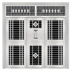 钢管焊接而成的防盗门,它的*大优点是通风、轻便、造型美观,且价格相对较低。该防盗门上半部为栅栏式钢管或钢盘,下半部为冷轧