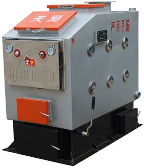 特点:改变了传统的下进风直烧方式,火焰绕行反烧,燃烧充分,负压加煤,灰尘向炉膛里吸,使用清洁;炉膛的高温区设计有多根受热管,热效率高,