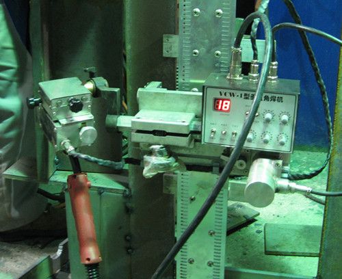 接头立角焊位置的焊接而专门设计的焊枪摆动机构特别适合船体垂直位置角焊缝的自动化焊接,为垂直位置角焊缝的焊接施工提供了一种高效、高质量的自动化焊接手段和方法。垂直自动角焊机与二氧化碳气体保护焊机(包括焊接