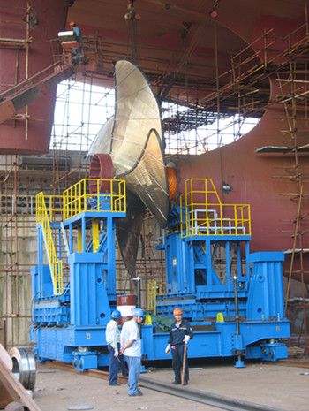 随着造船吨位的不断突破,船艉舵叶和螺旋桨的重量随之增加,沿用传统的