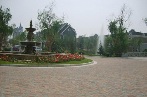 颜色单调的感觉;表面凹凸不平,有颗粒感,具有防滑、减速、透水的作用。