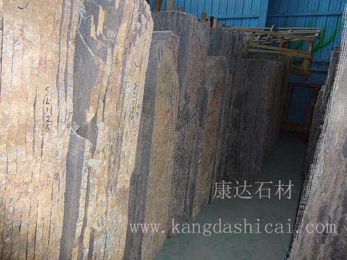 黄色板岩石 黄木纹网贴石地砖 不规则组合碎拼铺地石