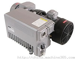 泵浦内偏心安装的转子与定子固定面相切,三片叶片在转子槽内滑动并与定子内壁相接触,将泵腔分为几个可变容积,如此反复运转,从而获得真空泵。所抽气体通过内置油雾