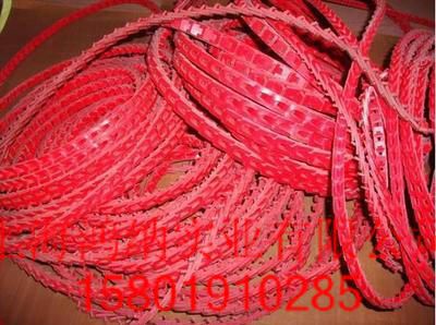 连接而成,各片易于拆卸重组的活络带。其楔角为40°,根据顶宽和带高不同有A,B,C,D,E五种型号。*大特点是长度尺寸可以任意加长或截短。若活络带局部损坏,可拆除损坏部分,进行更换而继续使用。 活络带仅适用于轻型、低速的动力传递。