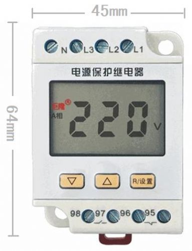 电源保护装置。是一种多功能三相电源系统或三相用电设备的监测和保护仪器。采用集成度高的微处理器,使装置具有简洁,精巧,使用方便,抗干扰能力强,高可靠性的特点。本产品集三相电压显示、过电压保护、欠电压保护、断相保护、三相电压不平衡保护、错相保护、零线断线保护于一体。显示采用高清晰超宽温中文