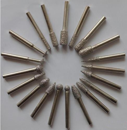 金刚石技术制成,是一种很好的小区域磨削或把小面积磨成碎片的带柄小模具,可用作内圆、圆角、沟槽、弧面、锥面等特殊表面磨削,以达尺寸精度和表面粗糙度要求。加工材料主要有