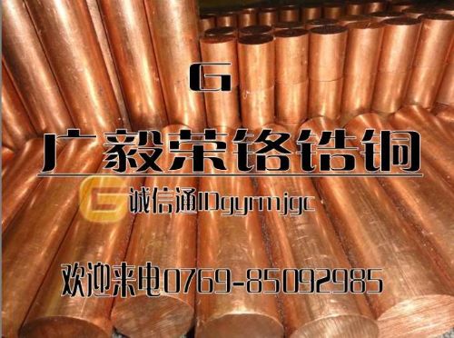 化学成分(质量分数)%( Cr:0.25-0.65, Zr:0.08-0.20)硬 度(HRB78-83)导电率 43Ms/m 软化温度 550℃ 特点:具有较高的强度和硬度,导电性和导热性,耐磨性和减磨性好,经时效处理后硬度、强度、导电性和导热性均显著提高,易于焊接。广泛用于