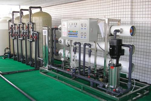 原水→原水加压泵→多介质过滤器→活性炭过滤器→软水器→精密过滤器→一级反渗透机→中间水箱→中间水泵→EDI系统→微孔过滤器→用水点