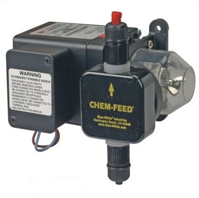 计量泵,单台的加药量13L/h,蓝白投药泵的设计是将化学药剂注入