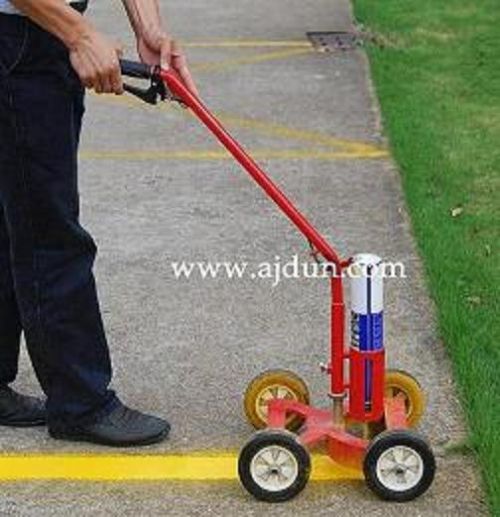 安装:把标线罐倒立垂直安装于划线推车的圆柱筒上,确认喷头对准圆柱筒底部的卡位,仔细检查各部件,确保标线漆罐安装稳固到位。