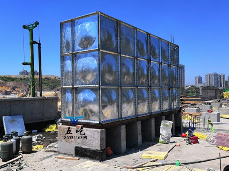 镀锌水箱里面,拉杆结构,使力学性能合理,水箱高(H)做到5米。