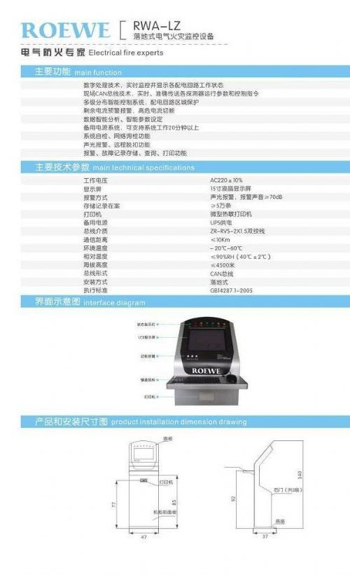 电源系统,可支持工作20分钟以上,系统自检,网络巡检功能,声光报警,远程脱扣功能,报警、故障记录存储、查询、打印功能