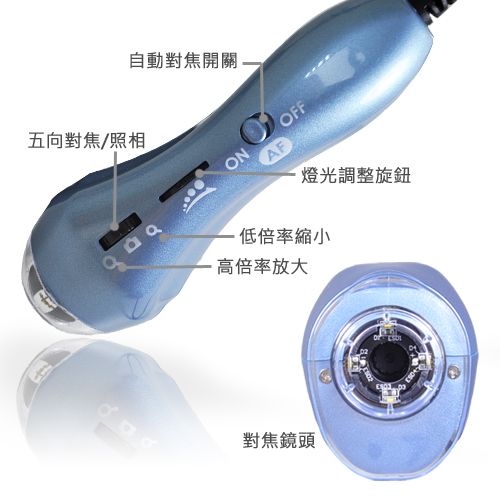 配件:手持式数位显微镜、CD、USB线、颈绳、转接插座、AAA