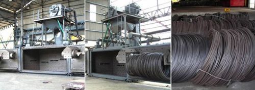 ①本设备效率高,使用4台投射效率高的线材*强力抛丸器,具有强力效能,清理后