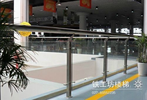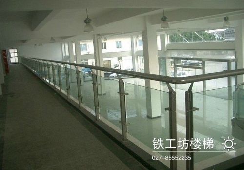 立柱,63Mm圆管,12浮法钢化玻璃组成,其特点是稳定性强,通透美观,适用各大公共空间楼梯,中空扶手。