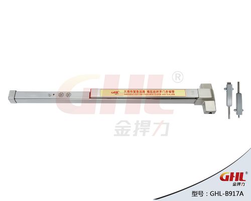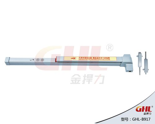上、下两点锁定,操作简易,推杆受压面积大,紧急逃生时,推杆受外来力即可快速打开门扇。