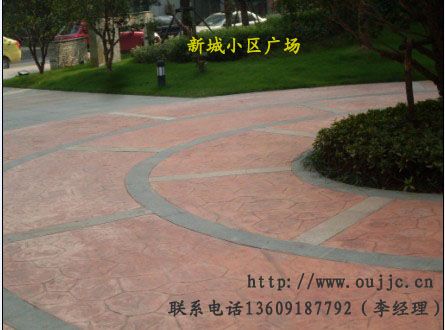 材料,一次成型、使用期长、不易褪色等优点。 高雅大方且图案颜色立体层次强,可随意选择颜色和图案搭配。是广场、停车场、街道、公园小道、市政道路采用的理想高级地坪,是取代彩色道板砖的理想替代产品,不起皮,不掉色,不裂缝,防尘止滑,方便清理!