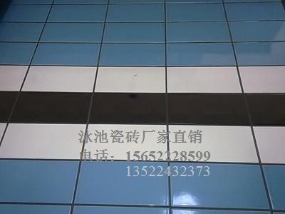 一般池内壁贴白色磁砖,泳道标志线贴黑色磁砖,池沿溢