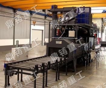 抛丸室室体结构及抛丸器的布置方式均经过计算机辅助设计(CAD)绘制,更为合理。提高了弹丸利用率,减少了对室体护板的磨损,保证了清理效果。采用具有大抛丸量、高抛射速度的悬臂离心抛丸器(Q034),能显著地提高清理效率,获得满意的清理质量。先进的瑞士GF.D公司设计技术,从而使本机具有设计先进、运行可靠、结构合理、生产效率高的特点。机器外貌构思新颖,操作使用及维修十分方便。